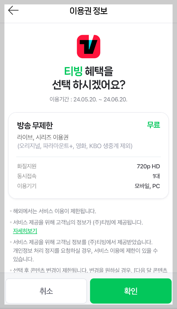 3. 티빙 무료 이용 범위