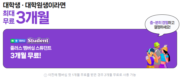 2. 네이버 플러스 멤버십 스튜던트 이용 (3개월 무료)